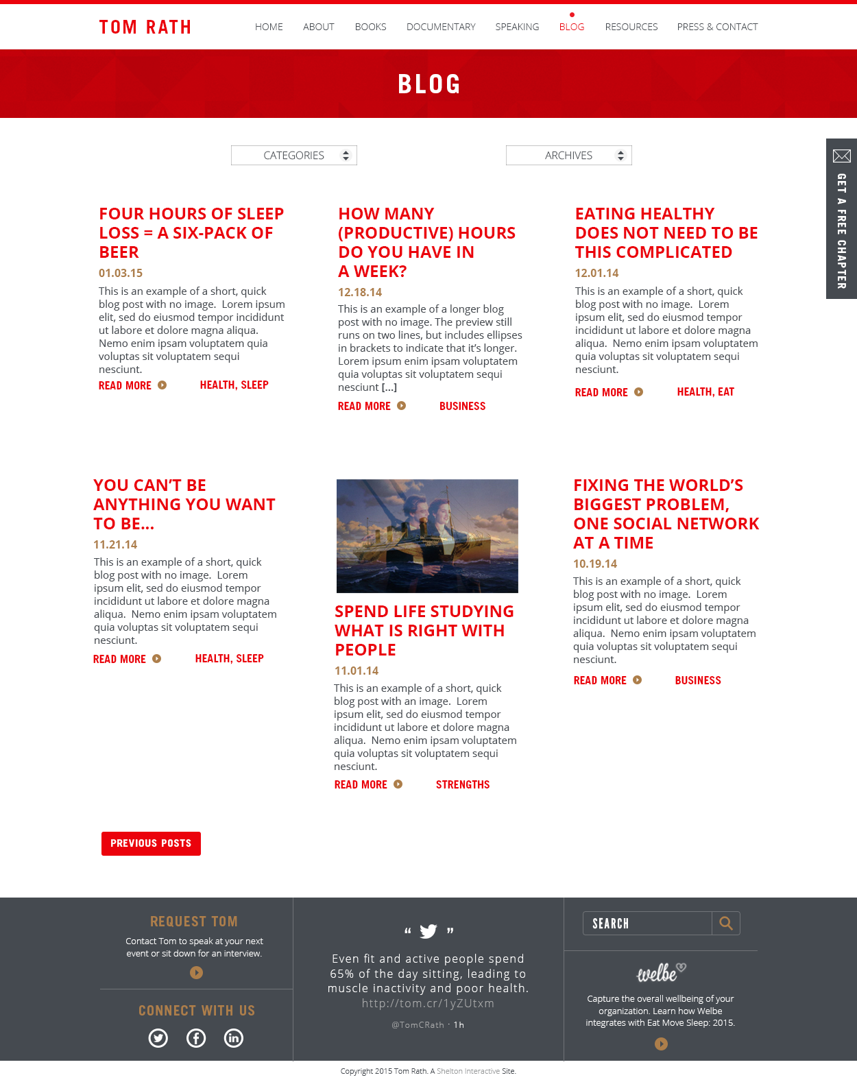 Project brief: To create the look, feel and website for best-sellling author Tom Rath. The site needed to be clean, contemporary, direct and incorporate his "Tom Rath Red." It also needed to sell books, educate viewers about his upcoming projects, and help to build his online platform.